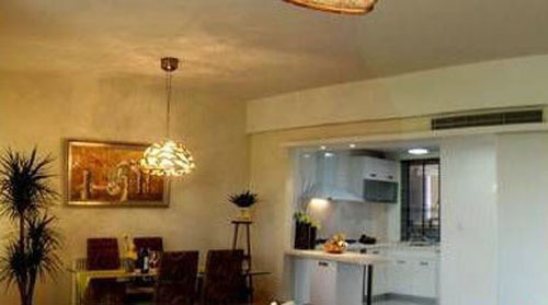 像這種廚房面積大,可餐廳并在一起的房型,不妨參考以上的“半圓”式吊頂設(shè)計,既美觀又實用。